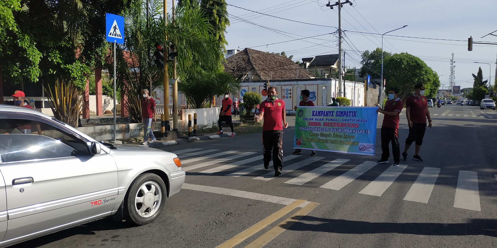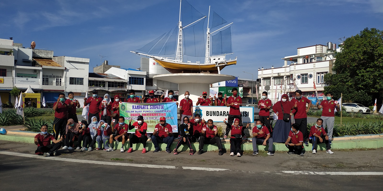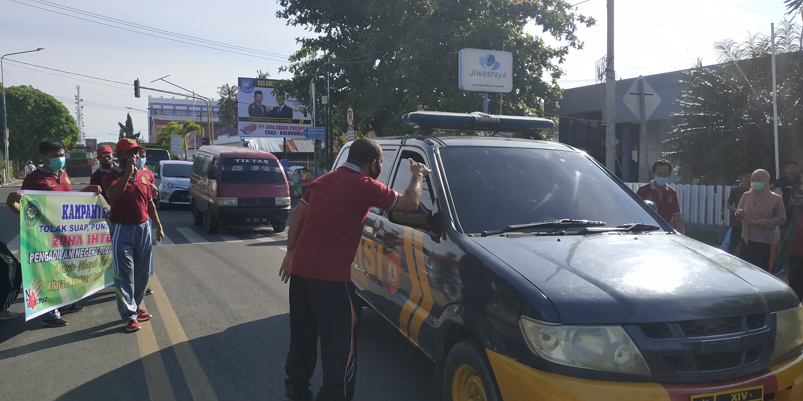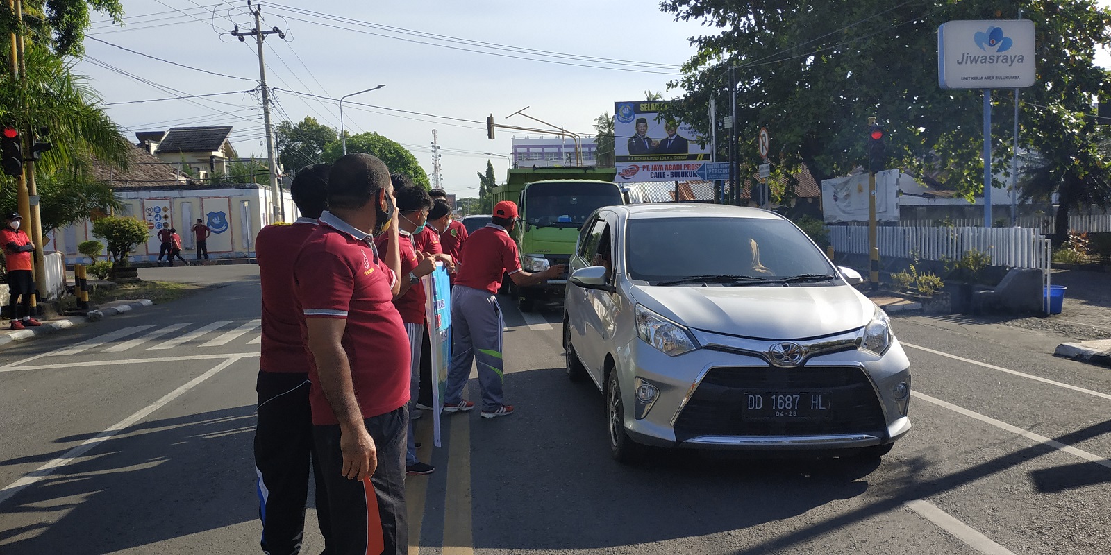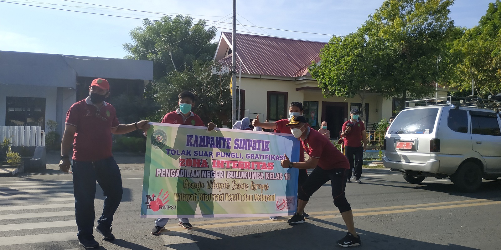 Para peserta berangkat dari Kantor secara bersama-sama dan tiba di lokasi sekitar pukul 08:30 dan langsung melakukan kampanye dipinggir jalan. Sembari masing-masing membagikan stiker dan membentangkan sepanduk yang berisikan pernyataan Pengadilan Negeri Bulukumba menolak suap dan gratifikasi.